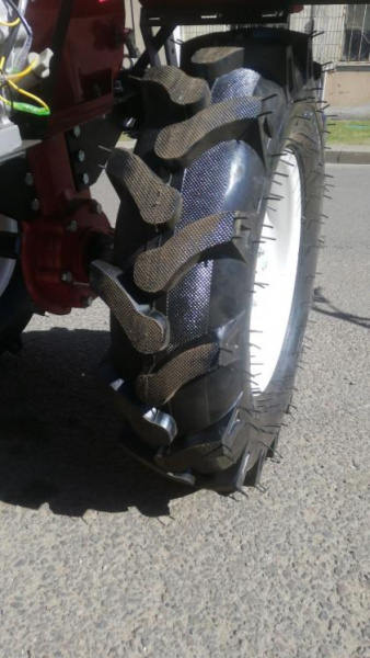 Резиновые колеса с высоким тракторным протектором SD 6×12 которые увеличивает КПД мотоблока на 7%.