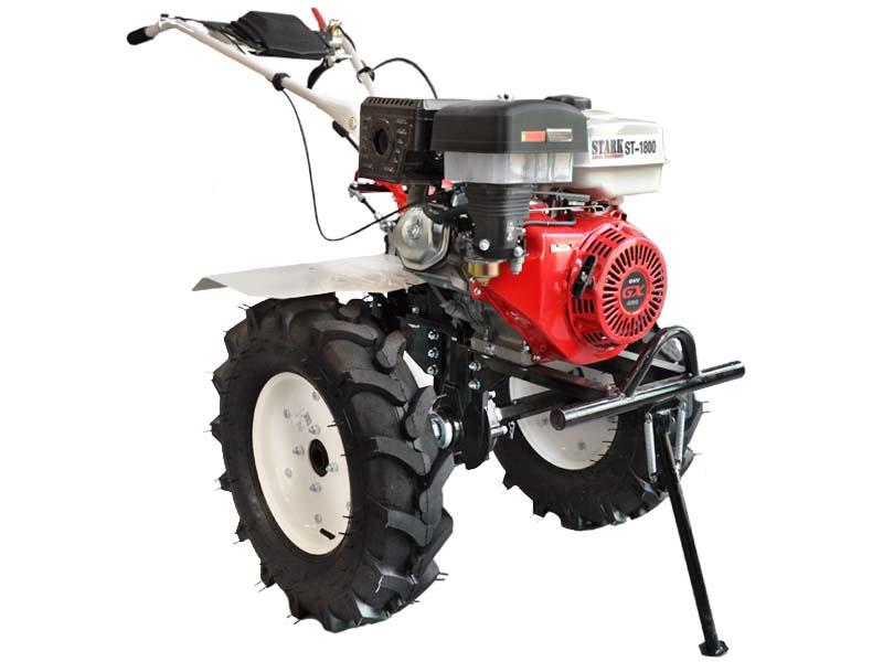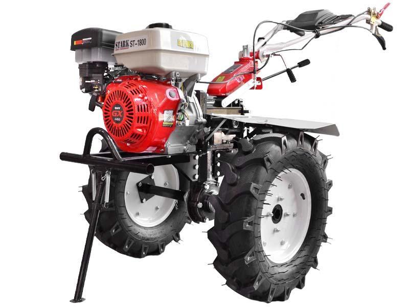 -Stark ST1800(7.00-12) комплектуется большими направленными колесами 7.00-12, что существенно увеличивает клиренс и сцепление с грунтом. В большинстве случаев это позволяя проводить любые сельскохозяйственные работы без дополнительного использования дорогих грунтозацепов.