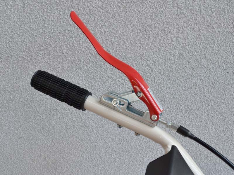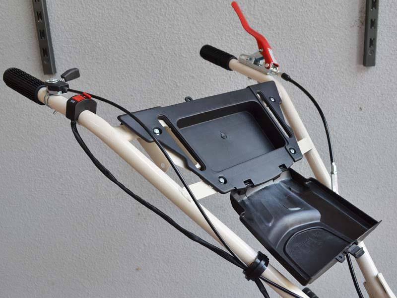- Транспортное колесо с увеличенным диаметром (опционально) позволяет легко преодолевать неровности участка и оснащено системой быстрого перевода в рабочий режим и обратно.