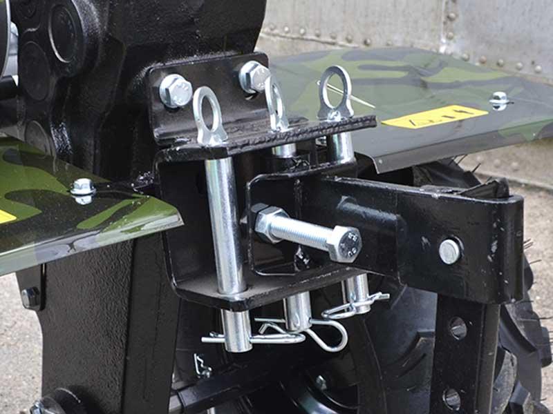 -В комплекте фрезы на 32 ножа и специальные составные либо цельные полуоси, позволяющими регулировать ширину культивации. Ограничители (маркеры) не входят в комплектацию и могут быть установлены дополнительно. Саблевидные кованные фрезы (32шт) и специальные составные либо цельные полуоси идеальны для работы с тяжелыми и глинистыми грунтами. Ограничители (маркеры) позволят защитить от повреждений плодовые деревья, кусты, постройки, заборы и прочее(в стандартную комплектацию не входят).