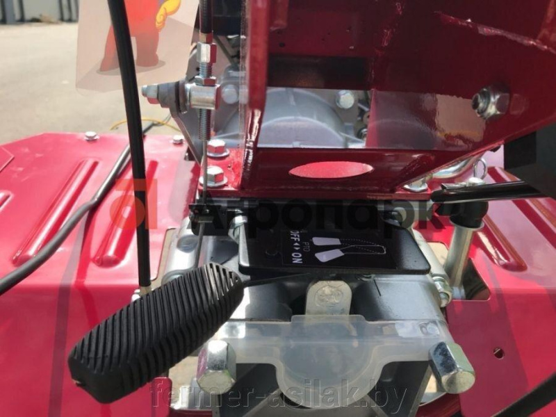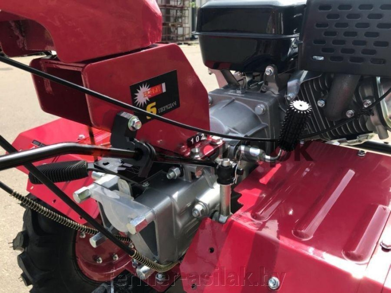Благодаря понижающей передаче скорость вращения колес (на любой передаче) замедляется при стандартных оборотах самого двигателя. Обращаем Ваше внимание, что в данном мотоблоке понижаются 1-я , 2-я и задняя передачи!