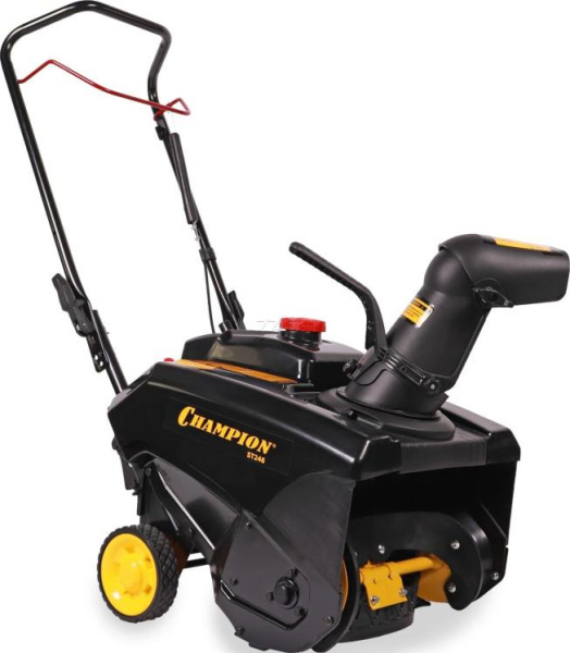 Снегоуборщик CHAMPION ST246 предназначен для уборки снега с ровных и твердых поверхностей, с соблюдением правил техники безопасности и руководства по эксплуатации. Аппарат предназначен для небольших участков. Данная модель используется для уборки свежевыпавшего снега. Бензин АИ-92 заливается в топливный бак объемом 1,6 л. Запуск двигателя осуществляется с ручного стартера. Одноступенчатый обрезиненный шнек не повреждает декоративные поверхности, сгребает снег и перемещает снегоотбрасыватель вперед. Снег выбрасывается через желоб, который поворачивается вручную на 190 градусов. Благодаря широкой горловине облегчена заправка топливного бака. Выброс снега происходит в нужном направлении благодаря желобу, имеющему возможность поворота на 190 градусов. Снегоуборщик оснащен колесиками для более удобного перемещения. Обрезиненный шнек - бережная очистка декоративных поверхностей. 4-х тактный одноцилиндровый двигатель с воздушным охлаждением. Легкое ведение снегоотбрасывателя. Регулировка угла выброса снега.