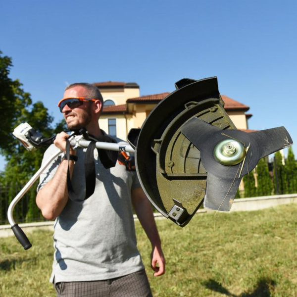 Расположение двигателя верхнее Форма рукоятки U-образная (велосипедная) Форма штанги прямая Разборная штанга да Телескопическая штанга нет Нож в комплекте трехлопастной Диаметр ножа, мм 254 Регулировка угла наклона нет Наплечные ремни да Антивибрационная система да Аккумулятор