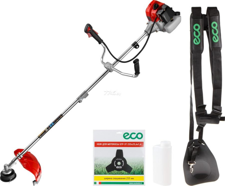 Мотокоса ECO GTP-185S Сomfort (EC1511-8) с разборнаой штангой диаметром 28 мм (состоит из двух частей). Многофункциональная и эргономичная рукоятка велосипедного типа. Эффективная антивибрационная система. Использование улучшенного (усиленного) ручного стартера с системой лёгкий запуск. Цельнометаллический приводной вал. Редуктор повышенной прочности. Топливный бак с полупрозрачными стенками. Праймер (система лёгкого запуска). Ударопрочный корпус двигателя. Комбинированный защитный кожух из прочного пластика. Усиленная полуавтоматическая косильная катушка с леской. Прочный трехлопастной нож. Двухплечный ремень для большего комфорта при работе. Два поршневых кольца для высокой компрессии.