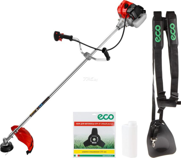 Мотокоса ECO GTP-215 Power (EC1512-9) с цельной штангой диаметром 26 мм и длиной 150 см. Многофункциональная и эргономичная рукоятка велосипедного типа. Эффективная антивибрационная система. Использование улучшенного (усиленного) ручного стартера с системой лёгкий запуск. Цельнометаллический приводной вал. Редуктор повышенной прочности. Топливный бак с полупрозрачными стенками. Праймер (система лёгкого запуска). Ударопрочный корпус двигателя. Комбинированный защитный кожуху из прочного пластика. Усиленная полуавтоматическая косильная катушка с леской. Прочный трехлопастной нож. Двухплечный ремень для большего комфорта при работе. Два поршневых кольца для высокой компрессии. Воздушное охлаждение. Смесь масла с бензином 1 к 40.