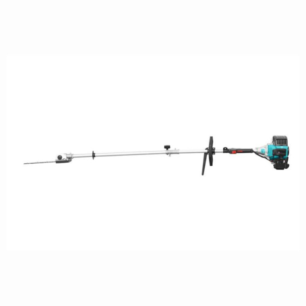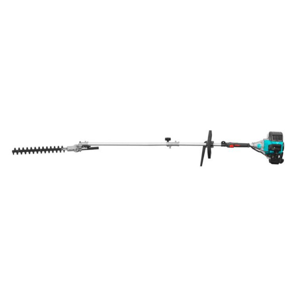 - Разъемная штанга позволяет установить одну из 3-х, идущих в комплекте, насадок: триммер для травы, высоторез цепной или кусторез с изменяемым углом обработки.