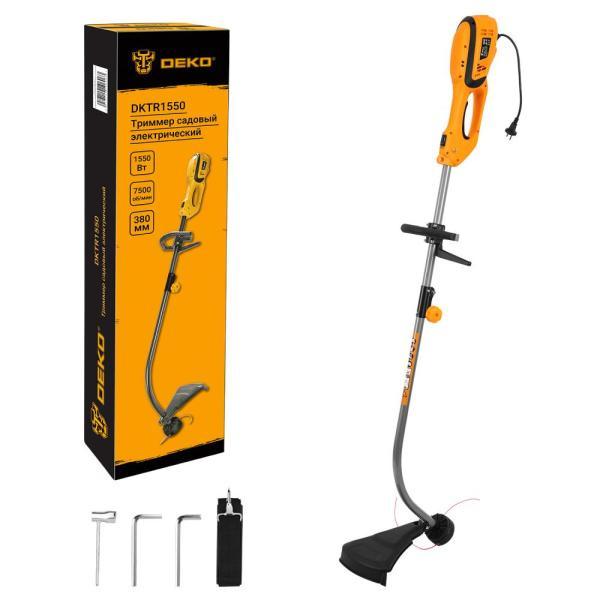 - Триммер садовый электрический DEKO DKTR1550 - компактная модель, удобная для скашивания травы в труднодоступных местах, вдоль заборов, клумб, подравнивания газонов, краев садовых дорожек.