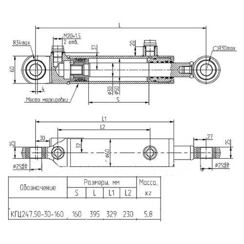 Гидроцилиндр в сборе для для тракторов малогабаритных. Длина 390мм